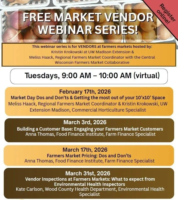 Hosted by Kristin Krokowski from UW-Madison Extension and Meliss Haack, the Regional Farmers Market Coordinator for the Central Wisconsin Farmers Market Collaborative.
